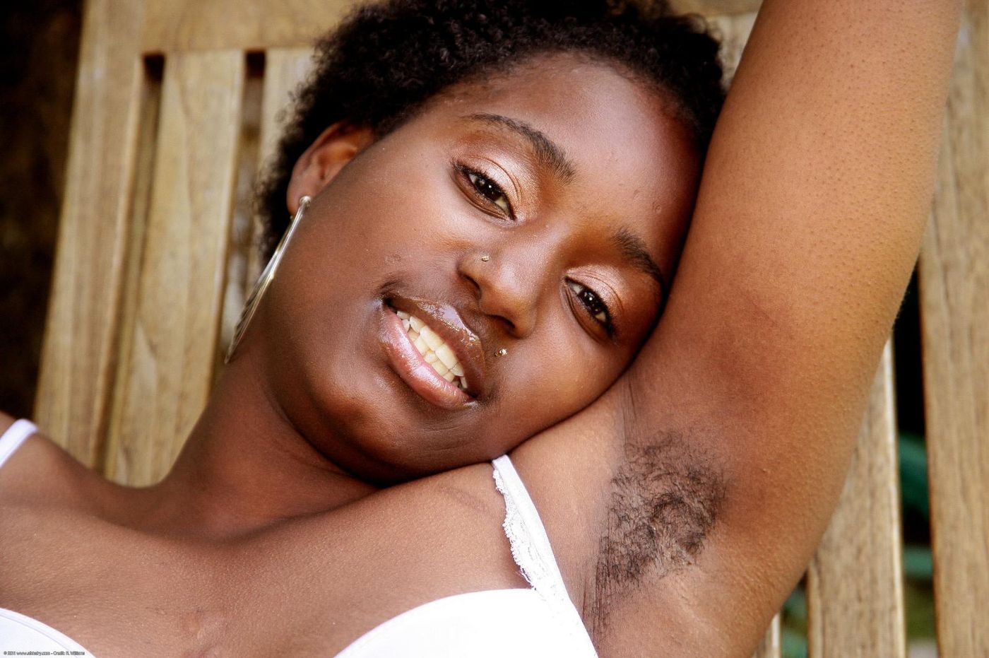- Description: Lee strips out of her white lingerie to show off her black and hairy body, watch as she reveals her hairy pits, as she masturbates her dark and hairy pussy. Brought to you by R Williams.