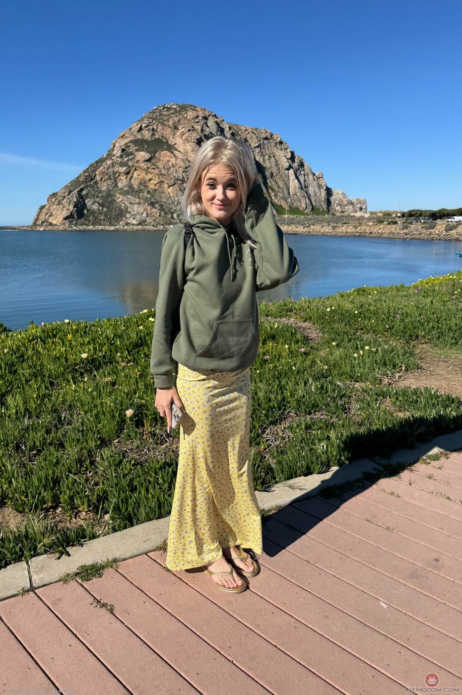 - Description: You take Nicole up the coast and stop at some lovely spots. She loves walking on the rocks and sand. She feeds the squirrels and is all smiles. She has a few smokes in the car, and you watch her pee when you get to the hotel.